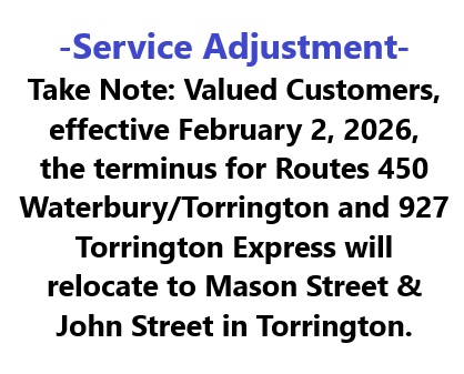 Local (Deviated Fixed Route Service) is available in Torrington, Winsted and Litchfield; Monday through Friday; and also, Torrington Saturday is operated by Northwestern Connecticut Transit District.